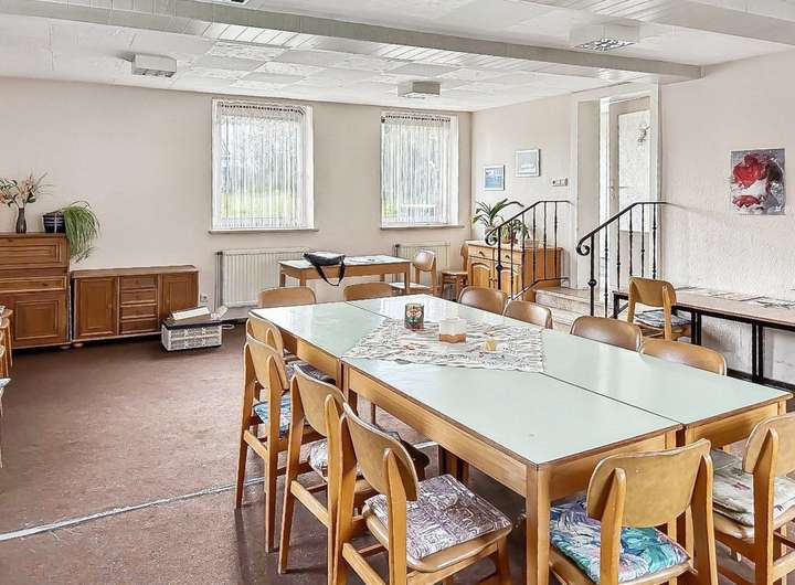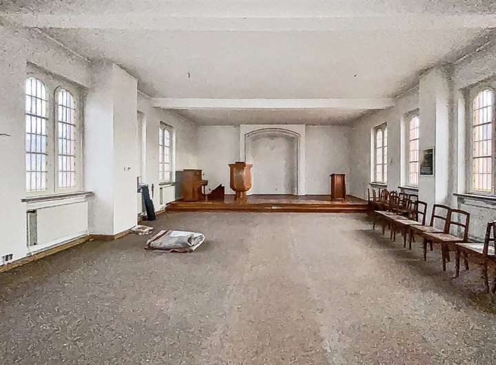 Der hohe Luftraum und der offene Grundriss ermöglichen flexible Nutzungskonzepte: Die Immobilie eignet sich hervorragend als Kultur- oder Veranstaltungsstätte, Galerie, Büro- oder Kreativraum, gastronomische Einrichtung, Bildungseinrichtung oder für soziale Projekte. Auch eine Umnutzung zu Wohnzwecken ist denkbar und erlaubt die Realisierung individueller Wohnideen. Die gute bauliche Substanz, originale Elemente und der großzügige ehemalige Gemeindesaal bieten zudem eine ideale Grundlage für kreative Gestaltungsmöglichkeiten.