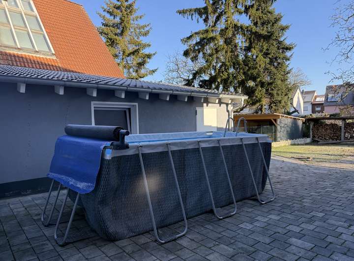 Auf einem weitläufigen Grundstück von ca. 728 m² erstrecken sich zudem rund 32 m² Nutzfläche in einem massiv gebauten Nebengebäude, welches zusätzlichen Gestaltungsspielraum für Hobby oder Lagerung ermöglichen. Die durchdachte Architektur und die großzügig angelegten Außenbereiche bieten vielfältige Nutzungsmöglichkeiten und zahlreiche Gelegenheiten, den Outdoor-Bereich zu genießen. Platz für einen Pool, hier uneingeschränkt möglich, nicht einsehbar für die Nachbarschaft, so kann man seinen individuellen Lebenstraum genießen.