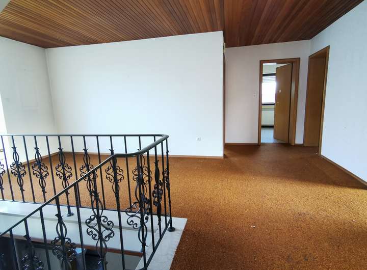 OG: Wohnzimmer, Küche, Schlafzimmer, Kinderzimmer, Arbeitszimmer, Bad m. Wanne, Dusche, Waschbecken u. WC, gr. Wohndiele