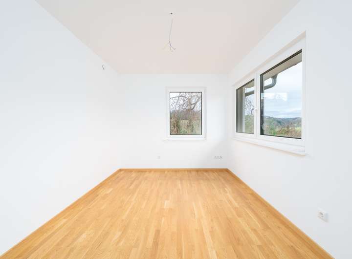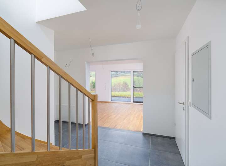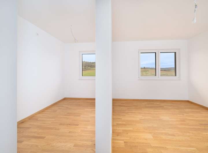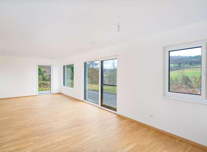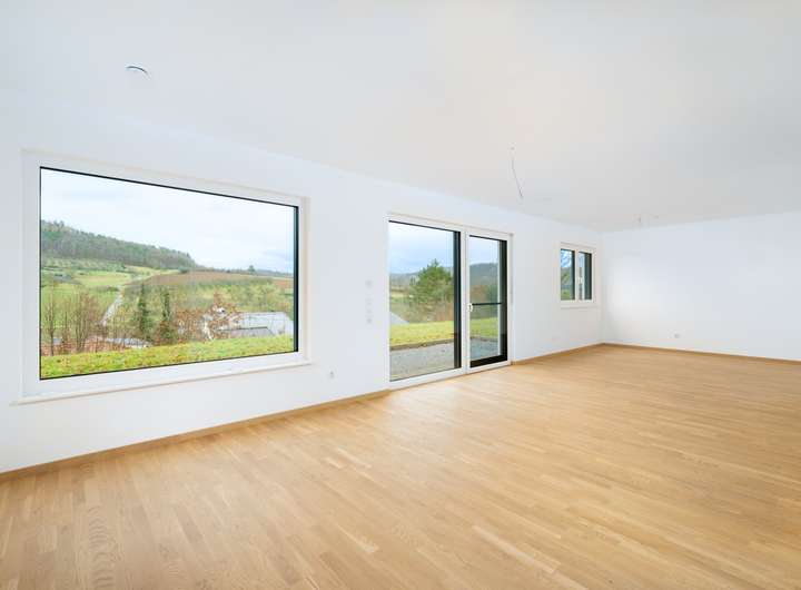 Da die Doppelhaushälften auf einer Anhöhe am Ortsrand stehen, haben Sie eine herrliche Aussicht in die Weinberge und Wiesen.