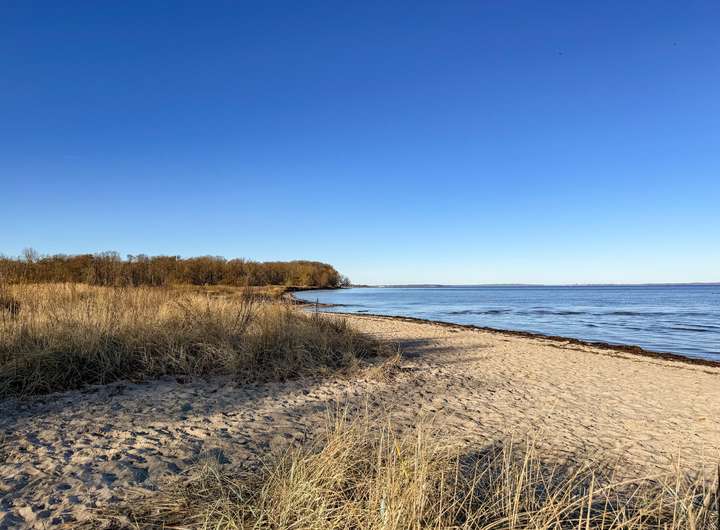 Der ca. 1 km entfernte Naturstrand bietet Ruhe, Möglichkeiten für Wassersportler und Spaziergänger sowie einen Ausblick auf die Geltinger Birk.