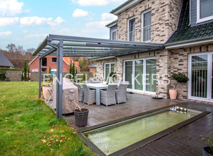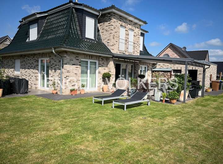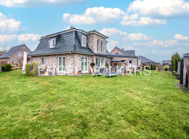 Diese im Jahr 2018 in massiver Klinkerbauweise errichtete Immobilie mit elegantem tannengrünem Mansarddach und Natur-Schiefer Schindeln an den Dachgauben repräsentiert eine seltene Synthese aus klassischer Ästhetik und modernster Technologie. Auf einem Grundstück von 789 m² erstreckt sich eine hochfunktionale Wohnfläche von ca. 179 m², aufgeteilt in Erdgeschoss mit ca. 100 m² und Obergeschoss mit ca. 79 m².
