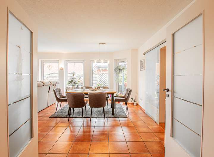 Bodentiefe Fenster im Wohn- und Essbereich