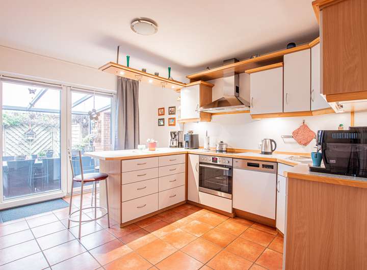 Helle, offene Küche mit Verbindung zum Wohnbereich
