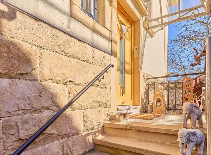 ✓ die symmetrische Fassadengestaltung beeindruckt mit markanten Erkern, Balkonen und wunderschönen, rückwärtig angebauten Wintergärten