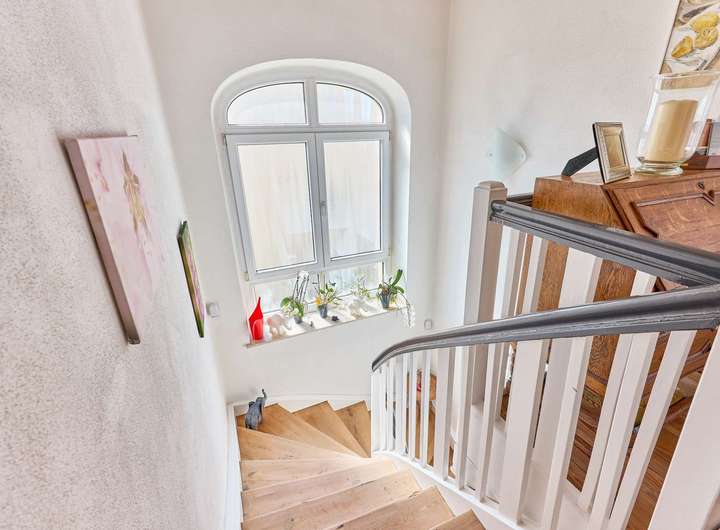 ✓ Echtholzdielenböden, überhohe Decken, stilvolle Kasettentüren, Holzvertäfelungen und das elegante Treppenhaus spiegeln die prachtvolle Epoche des Jugendstils wider und verleihen diesem Anwesen eine unverwechselbare Atmosphäre