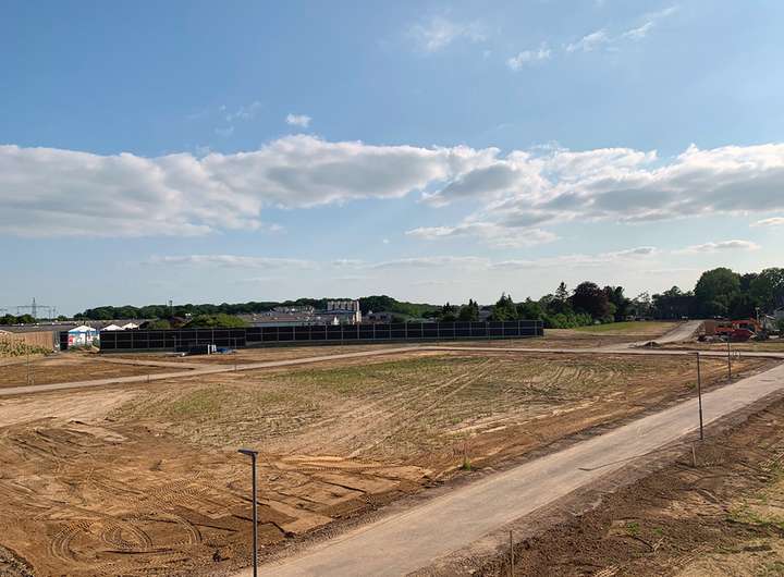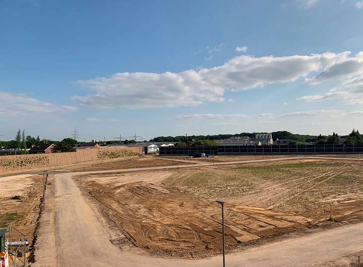 Die Erschließungsmaßnahmen sind abgeschlossen und die Baustraße ist inkl. Beleuchtung fertig gestellt, so dass direkt mit der Aufnahme der Hochbautätigkeiten begonnen werden kann.