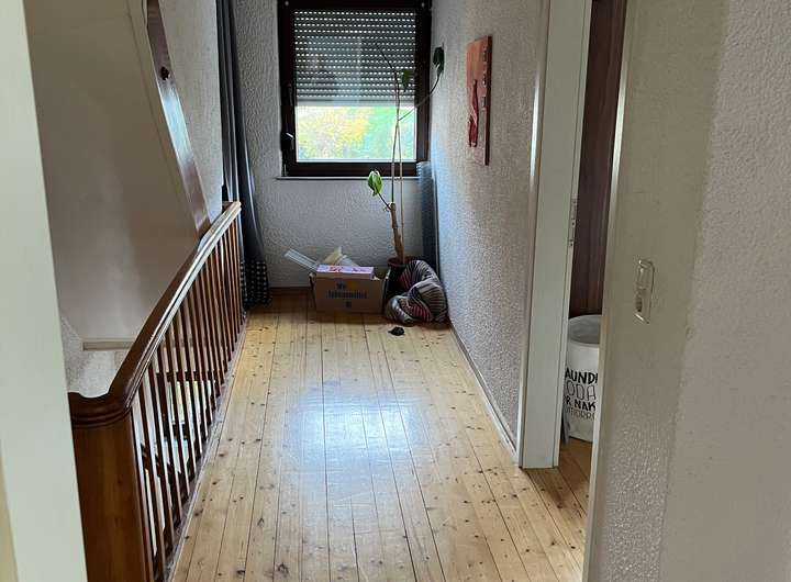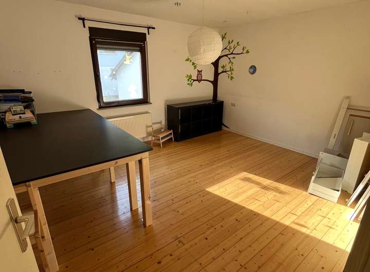 Das Obergeschoss umfasst drei zusätzliche Zimmer, die aktuell als Schlafzimmer, Kinderzimmer und Büro dienen.