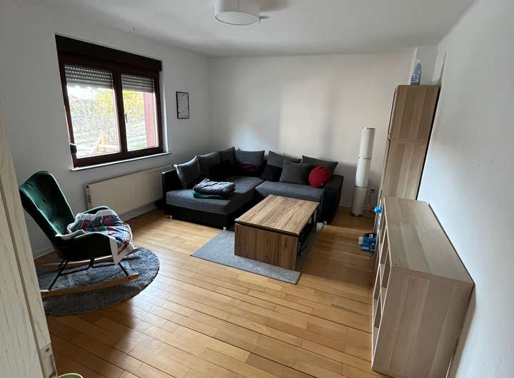 Im Erdgeschoss befinden sich derzeit das Badezimmer, die Küche und das Wohnzimmer.