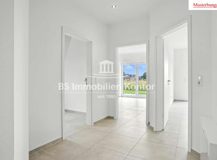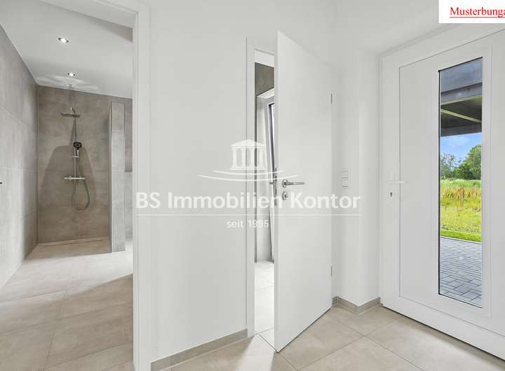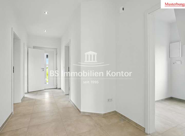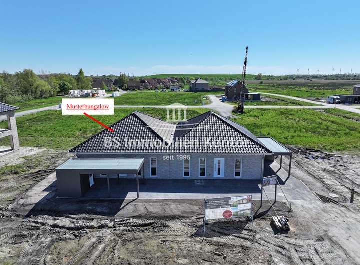 Lassen Sie sich von diesem Wohntraum überzeugen. Diese Neubau Bungalow wird Ende 2026/27 von einem renommierten Bauunternehmen aus der Region auf einem zentral gelegenen Grundstück in Conrebbersweg schlüsselfertig errichtet. Die äußerst ansprechende Raumaufteilung sowie die bodentiefen Fenster, lassen die ca. 87qm große Wohnfläche lichtdurchflutet und weitläufig erscheinen. Das pflegeleicht angelegte Grundstück bemisst ca. 300qm. Jede Bungalowhaushälfte verfügt über einen eigenen Carport und eine nach Westen ausgerichtete Terrasse. Die Küche ist als offene Wohnküche geplant und lädt zum gemeinschaftlichen Kochen und Verweilen ein. Der über die Bodentreppe erreichbare Dachboden ist ebenfalls sehr großflächig und bietet Ihnen ausreichend Abstellmöglichkeiten. Die Immobilie wird nach den aktuellen, energetischen Richtlinien erstellt. Standardmäßig verfügt der Bungalow über folgende Ausstattung: Elektrische Jalousien, Dreifachverglaste Fenster, Fußbodenheizung, Raufaser tapeziert, hochwertige Fliesen etc. Eine ausführliche Baubeschreibung erhalten Sie gerne auf Nachfrage. Sonderwünsche können gern gegen Aufpreis und sofern dies aufgrund des Baufortschrittes noch möglich ist, umgesetzt werden. Aufgrund der barrierefreien Anordnung der Räumlichkeiten eignet sich dieser Bungalow ideal als Altersruhesitz. Beheizt wird das Objekt durch eine Luft-Wärme-Pumpe. Die installierte PV-Anlage wird mit 8.500,00€ zusätzlich berechnet. Ein Objekt für Menschen die das "ebenerdige Wohnen" bevorzugen. Zögern Sie nicht uns zu kontaktieren und vereinbaren Sie gerne einen Besichtigungstermin für das baugleiche Musterhaus.