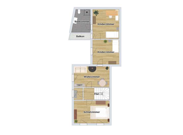 Die durchdachte Raumaufteilung mit sechs gut geschnittenen Zimmern auf zwei Etagen - vier davon im Obergeschoss - Ist hervorzuheben.