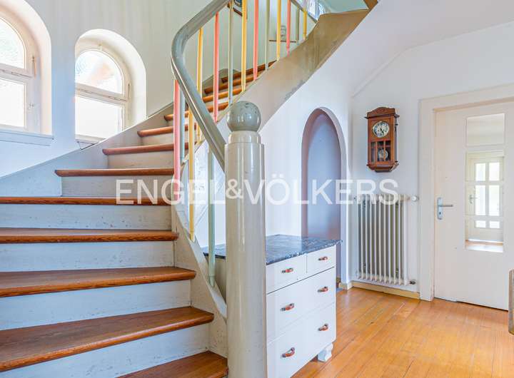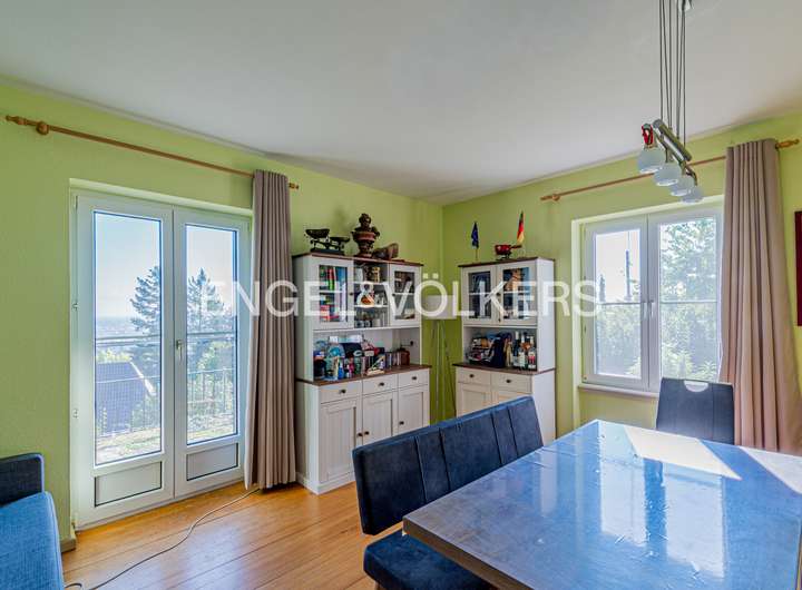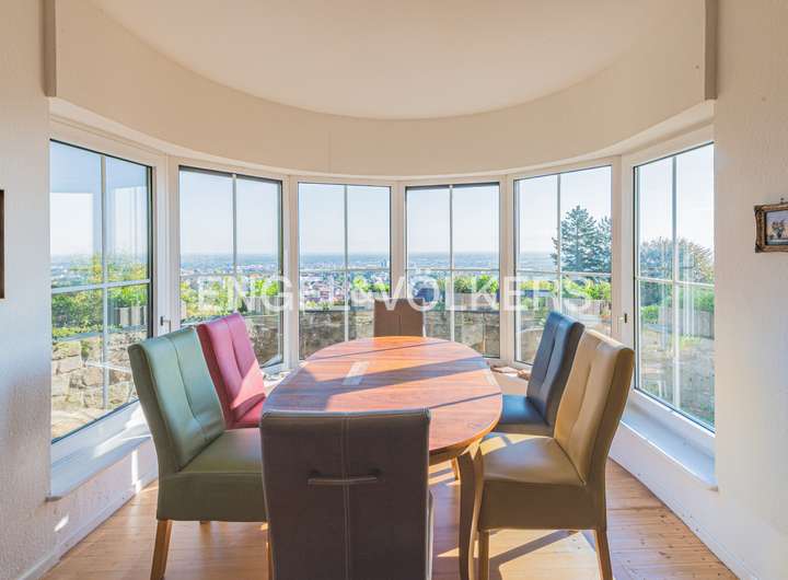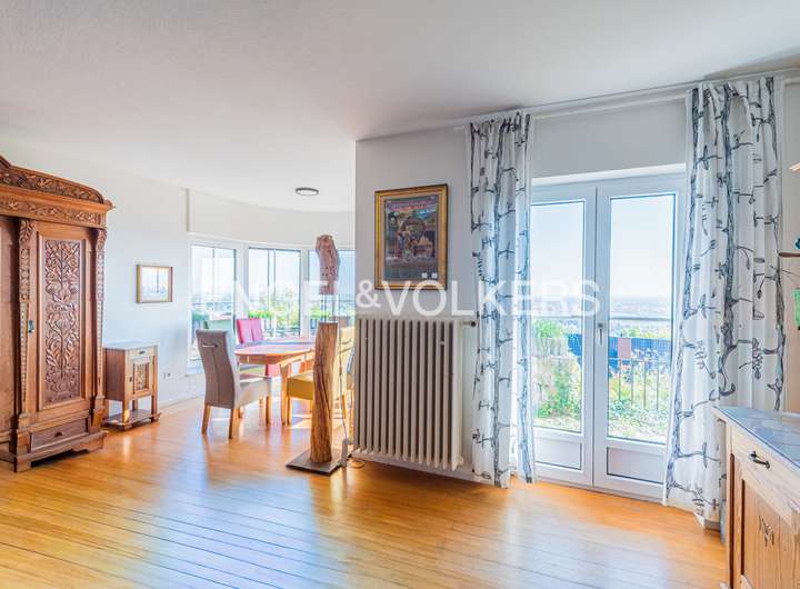 In exklusiver, erhöhter Lage mit unschlagbarer Privatsphäre, eigenem Waldstück und einem atemberaubenden Blick über die Rheinebene präsentiert sich diese außergewöhnliche Villa aus den 1930er Jahren. Eine private Auffahrt führt nahezu bis vor die Haustür und unterstreicht den besonderen Charakter dieses Anwesens. Bereits beim Betreten wird man von der Exklusivität der Lage, der Ruhe sowie der harmonischen Einbettung in die umliegende Natur beeindruckt. Die charmante Villa mit ihrem markanten Turm, errichtet im typischen Stil der 30er Jahre, bietet auf zwei Wohnebenen viel Raum zur individuellen Gestaltung. Im Erdgeschoss befinden sich vier Zimmer, von denen drei direkten Zugang zur Terrasse und einen Panoramablick bieten. Des Weiteren finden Sie hier eine Küche mit Zugang ins Freie und ein Badezimmer. Über eine wunderschöne Holztreppe gelangen Sie in das Obergeschoss, das über dreieinhalb Zimmer, ein Bad und eine Abstellkammer verfügt. Das Haus ist teilunterkellert. Das Anwesen umfasst zudem einen großzügigen Garten, Terrassen und ein idyllisches Waldgrundstück sowie mehrere Parkmöglichkeiten. Die Kombination aus historischer Architektur, traumhafter Alleinlage und unverbaubarem Weitblick macht dieses Anwesen zu einer echten Rarität auf dem Immobilienmarkt.