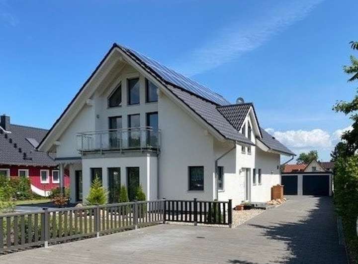 In ruhiger Lage von Rechlin präsentiert sich dieses wunderschöne, 2018 erbaute Einfamilienhaus als ein modernes Zuhause mit hochwertiger Ausstattung und viel Raum zum Wohlfühlen. Auf einem Grundstück von ca. 930 m² und mit einer Wohnfläche von ca. 220 m² verbindet die Immobilie zeitgemäßen Wohnkomfort mit einem harmonischen Wohnambiente. Schon beim Betreten des Erdgeschosses öffnet sich ein weitläufiger, heller Wohnbereich, der durch seine offene Architektur besticht. Die großzügigen Fensterflächen lassen viel Tageslicht herein und schaffen einen harmonischen Übergang zur Südwest-Terrasse und dem liebevoll angelegten Garten. Die moderne, offene Küche mit Küchentresen fügt sich nahtlos in den Wohnraum ein und bildet das kommunikative Herzstück des Hauses. Ebenfalls auf dieser Ebene befindet sich ein gemütliches Zimmer, das sich hervorragend als Schlaf- oder Arbeitszimmer eignet. Ein stilvolles Wannenbad ergänzt den Wohnkomfort. Über die Treppe führt der Weg ins Obergeschoss, das mit drei wunderschön gestalteten Zimmern begeistert. Von hier aus eröffnet sich der Zugang zum Balkon – ein idealer Ort, um den Tag entspannt ausklingen zu lassen. Das moderne Duschbad beeindruckt mit einer Regendusche und einer integrierten Sauna, die luxuriöse Wellnessmomente im eigenen Zuhause ermöglicht. Zudem besteht eine Vorbereitung für den Einbau einer Klimaanlage. Der im Erdgeschoss befindliche Hauswirtschaftsraum mit Zugang zum Garten vervollständigt die funktionale Gestaltung des Hauses. Beheizt wird das Haus durch eine Luftwärmepumpe in Kombination mit einer Fußbodenheizung und einer automatischen Belüftungsanlage. Eine Wasserentkalkungsanlage sorgt im gesamten Haus für gute Wasserqualität. Für die Gartenbewässerung steht ein eigener Brunnen zur Verfügung. Die Photovoltaikanlage ist bereits vorhanden und kann bei Bedarf erweitert werden. Zusätzlichen Komfort bietet die große Doppelgarage mit elektrischen Rolltoren und einem angeschlossenen Werkstattraum. Ein charmantes Holz-Gartenhaus fügt sich harmonisch in das Grundstück ein und schafft weiteren praktischen Stauraum. Ein liebevoll gestaltetes Zuhause, das durch seine moderne Ausstattung, seine großzügigen Räume und seine stimmige Architektur beeindruckt.