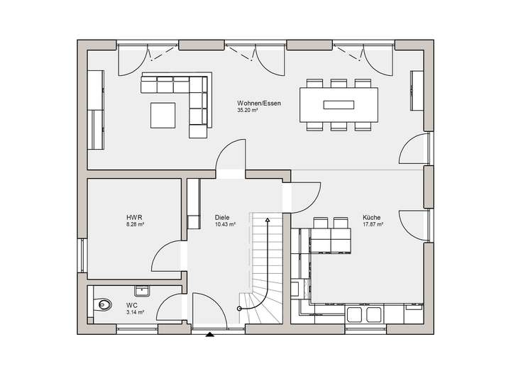 Lassen Sie sich begeistern von 128 m² im Architektenhaus Jaro. Der Grundriss überzeugt in jeder Hinsicht, denn im Erdgeschoss erwartet Sie ein großzügiger, offener Wohnbereich mit Essbereich und einer offenen Küche. Hier werden Wohnträume wahr, denn für jedes Familienmitglied findet sich hier genug Platz für das wahre Leben! Nicht fehlen dürfen auf der Etage ein Gäste-WC und der Hauswirtschaftsraum.