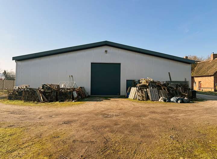 Aktuell dient die Halle als Standort für ein Sanitärunternehmen, das Verkaufs-, Ausstellungs- und Lagerfläche sowie einen Büro- und Sozialtrakt umfasst. Da das Wohngebäude seinerzeit als Betriebsleiterwohnhaus genehmigt wurde, bilden Wohnhaus und Halle eine Einheit und können ausschließlich gemeinsam veräußert werden.