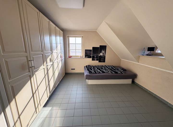 Dachgeschoss: Vier Schlafzimmer, Diele, Bad (mit ebenerdiger Dusche, Wanne, Waschtisch, WC und Pissoir), Hauswirtschaftsraum