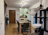 Die Wohnung verfügt über einen großen Wohn/-Essbereich, einer zum Essbereich, durch eine Theke, geöffneten Küche. Die Einbauchküche ist mit neuen, hochwertigen Geräten ausgestattet. Des Weiteren ist die Wohnung mit einem großzügigen Flur, einem Tageslichtbad mit Badewanne, einem Schlafzimmer, einem Gäste-WC, einem Abstell-/Vorratsraum, sowie 2 Balkonen ausgestattet.