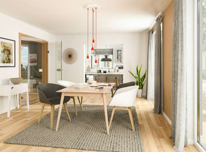 Das Landhaus 142 besticht durch sein ländliches Flair genauso wie durch seine zeitlose Eleganz. Hier findet garantiert jeder seinen Platz. Die großzügig geschnittenen, lichtdurchfluteten Räume auf beiden Ebenen warten nur noch auf Ihre Gestaltungsideen. Zu den Mahlzeiten trifft sich die ganze Familie in der Küche und auch das Wohnzimmer eignet sich hervorragend für gemütliche Stunden oder fröhliches Beisammensein.