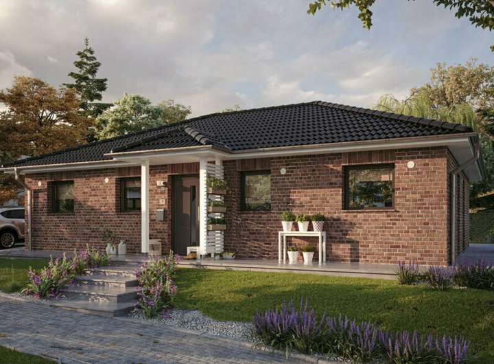 Für eine Familie mit zwei Kindern ist der Bungalow 110 ein ideales Zuhause. Er bietet ein gemütliches Wohnzimmer mit Essbereich, ein geräumiges Schlafzimmer und zwei weitere Zimmer. Alle Räume sind dank großer Fenster hell und freundlich. Mit quasi einem Schritt sind Sie mit Ihren Liebsten im Garten und können die Sommerzeit bei einem Grillabend genießen.