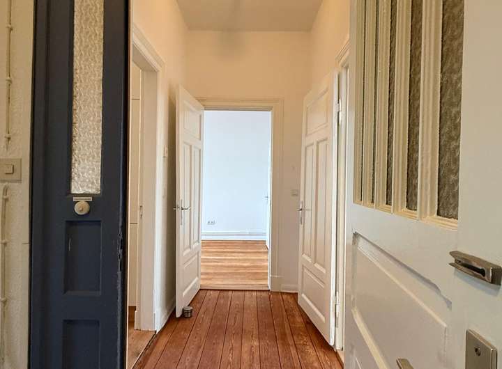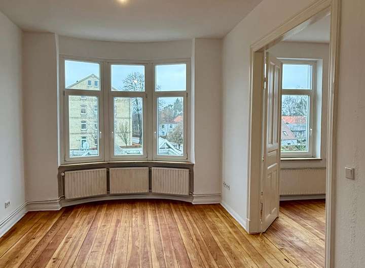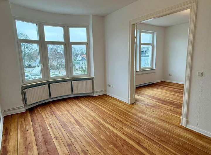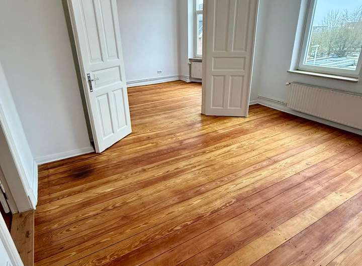 Diese hochwertig ausgestattete 3-Zimmer-Altbauwohnung mit ca. 75 m² Wohnfläche befindet sich im 2. Obergeschoss eines gepflegten Mehrfamilienhauses in Schleswig. Die Wohnung überzeugt durch eine gelungene Kombination aus moderner Ausstattung und hochwertiger Bausubstanz. In den Wohnräumen wurden edles Eichenparkett sowie die originalen Massivholzdielen aus dem Baujahr aufwendig abgeschliffen und geölt, was ein warmes und exklusives Wohnambiente schafft.
