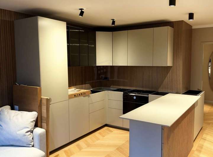 - Moderne Einbauküche mit mit Steinarbeitsplatte