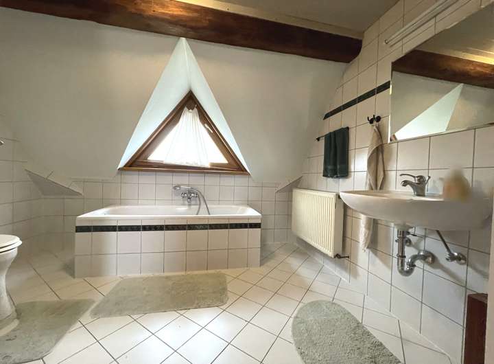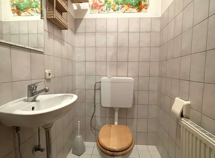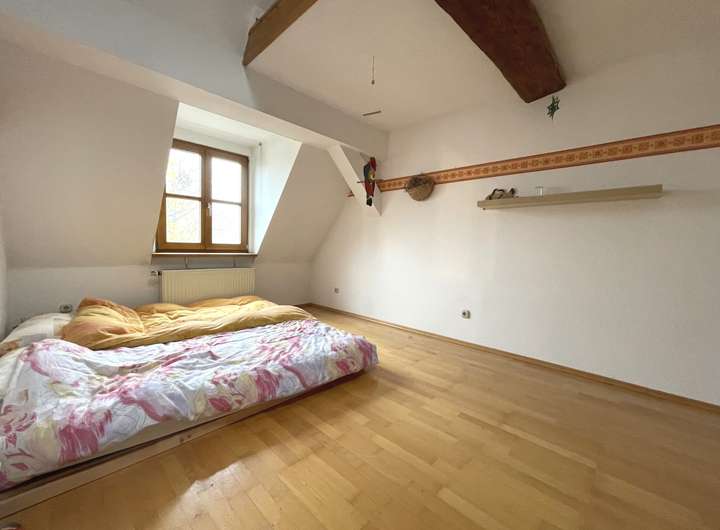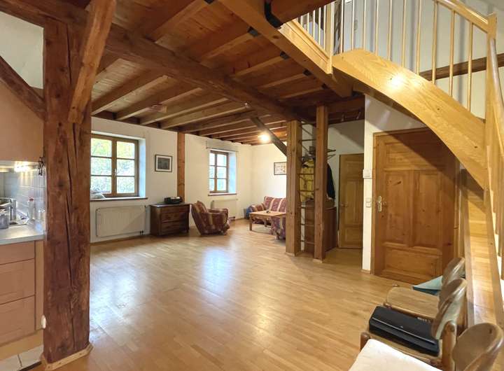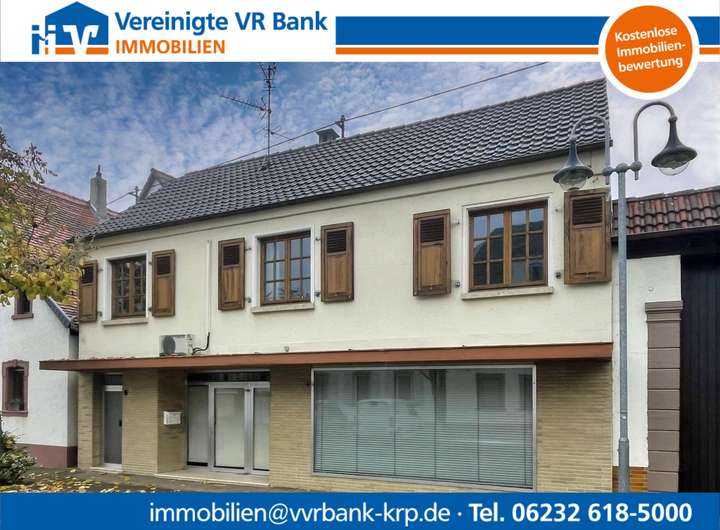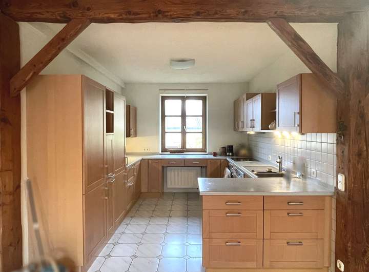 Im Erdgeschoss des Vorderhauses befindet sich die ehemalige Bäckerei mit Backstube, Verkaufsraum und eine Küche. Im Obergeschoss finden Sie drei Zimmer und ein Bad.