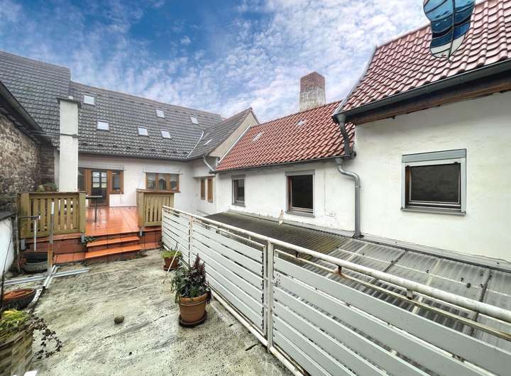 Über eine große verbundene Terrasse kommen Sie auf die andere Seite zur umgebauten Scheune die sofort bezugsfrei wäre. Die Scheune ist auch durch den Garten von der Karolinenstraße 3a aus zu erreichen ( Post/Meldeadresse besteht da bereits).