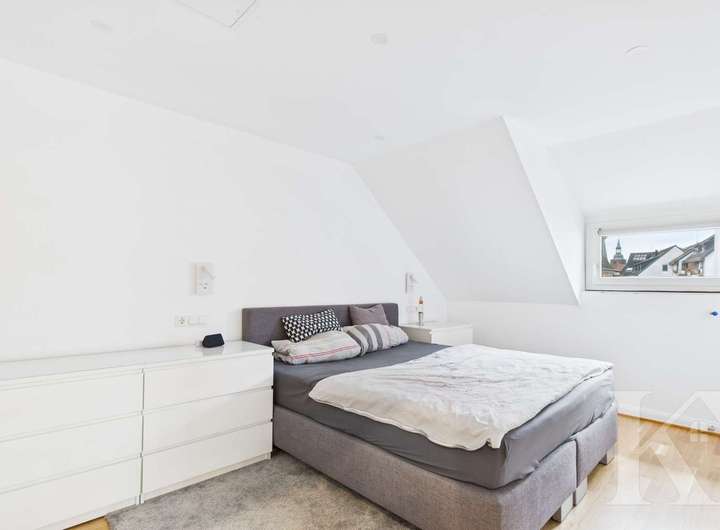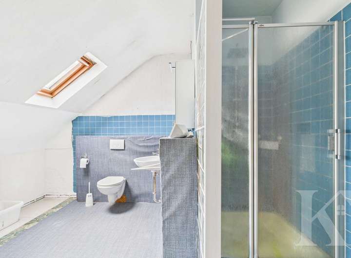 Im Obergeschoss stehen ein großes Schlafzimmer, ein Kinderzimmer sowie ein Ankleidezimmer zur Verfügung. Ein Badezimmer befindet sich ebenfalls auf dieser Ebene, das zudem die Möglichkeit bietet, es vollständig nach eigenen Vorstellungen neu zu gestalten und modern anzupassen. Der Grundriss eignet sich optimal für Familien oder Paare mit Platzbedarf.