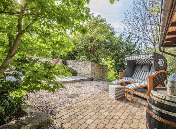 + Tolle Außenbereiche: Der uneinsehbare Süd-Garten auf ca. 973 m² Grund lädt zum Verweilen ein - mehrere Terrassenbereiche bereichern das Erlebnis