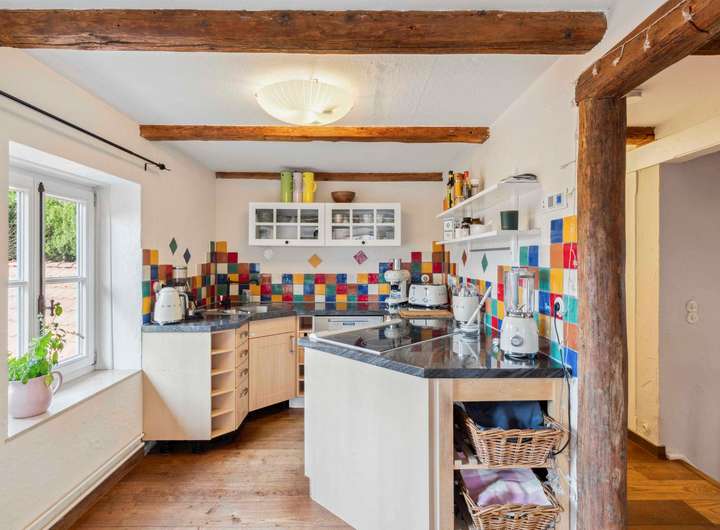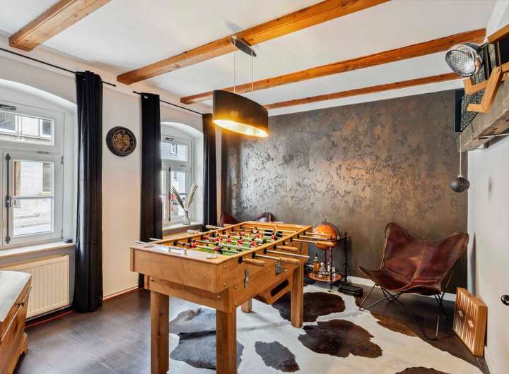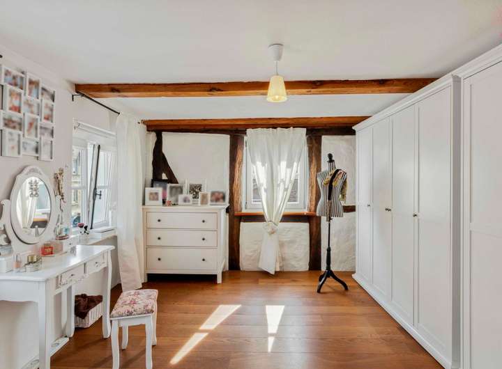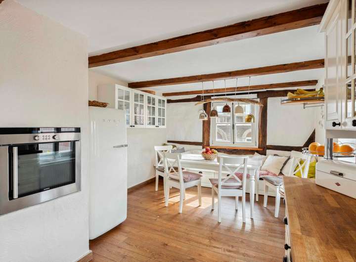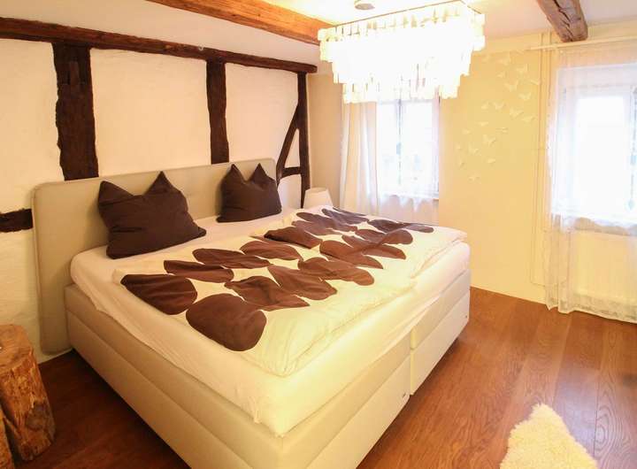 Das ca. 1740 erbaute Fachwerkhaus wurde im Jahr 2015 umfassend saniert und befindet sich in neuwertig modernisiertem Zustand. Die Wohnfläche von insgesamt ca. 210 m² verteilt sich auf insgesamt 7 vielfältige Zimmer. Darunter befinden sich ebenso einladende Schlaf-, Wohn- und Kinderzimmer wie auch vielfältige Hobby- und praktische Nutzräume. Während sich die Küche mit moderner Einbauküche und angrenzendem Essbereich im 1. Obergeschoss findet, stehen Ihnen sowohl im 1. als auch im 2. Obergeschoss stilvolle Duschbäder zur Verfügung, die noch durch ein Gäste-WC im Erdgeschoss ergänzt werden.