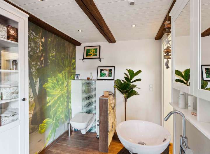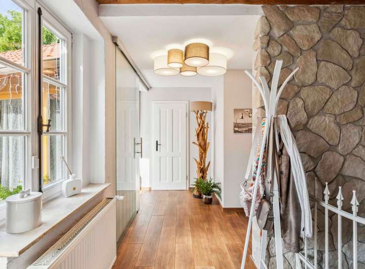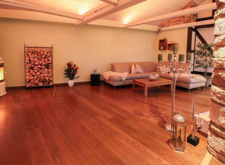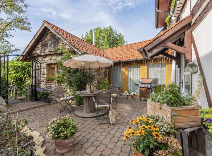 Eine vollendete Synthese aus herrlichem Wellness-Feeling, urig-gemütlichem und dennoch hochmodernem Wohnerlebnis sowie attraktiven Perspektiven gewährt dieses traumhaft modernisierte Fachwerkhaus aus dem 18 Jhd. Für harmonisches Abschalten sorgen hier ein Freiluft-Jacuzzi und eine Sauna, wohingegen eine großzügige Platzvielfalt zum Realisieren Ihrer persönlichen Wohnträume beiträgt.