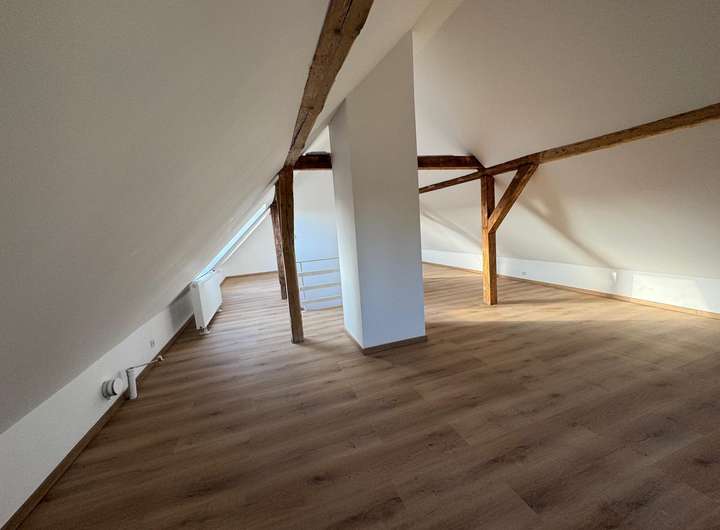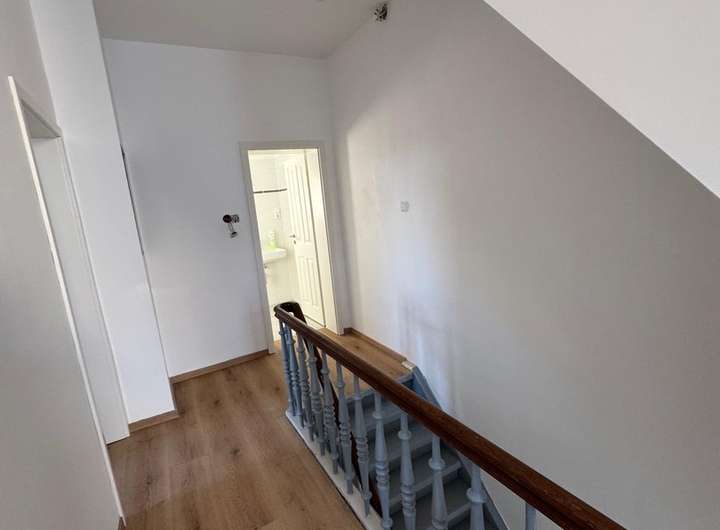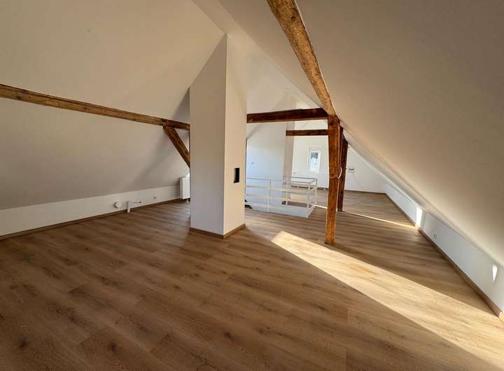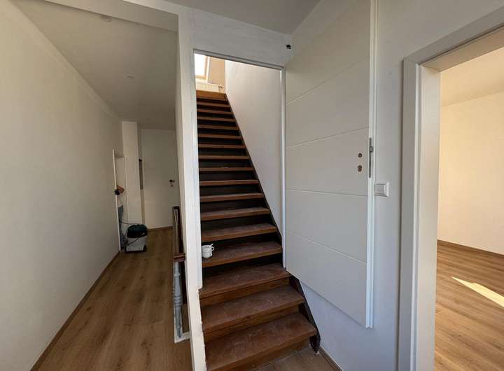 Es handelt sich um ein Zwei Familienhaus mit jeweils getrennten Eingängen. Die gepflegte 4-Zimmer-Wohnung befindet sich im 1. und 2. Obergeschoss des Hauses und verfügt über einen eigenen Abstellraum . Die Wohnung Hat eine offene Küche die neu installiert wurde. Der Dachboden ist ausgebaut und bietet mit 38@m und 59 Qm Grundfläche Platz für eine individulle Nutzung. Das Badezimmer wurde vollständig erneuert und befindet sich in einem modernen, neuwertigen Zustand.