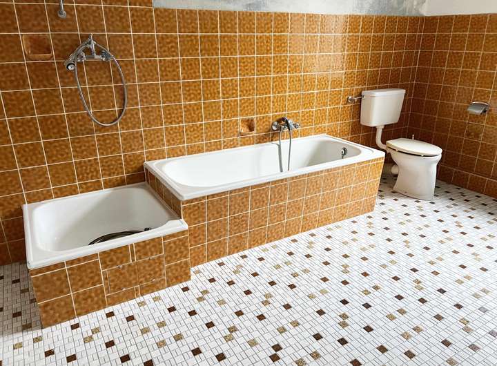 + Bäder gefliest m. Wanne, bzw. Wanne u. Dusche,