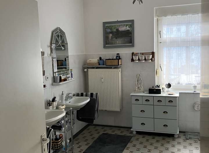 • Großzügiges Bad mit antiken Fliesen