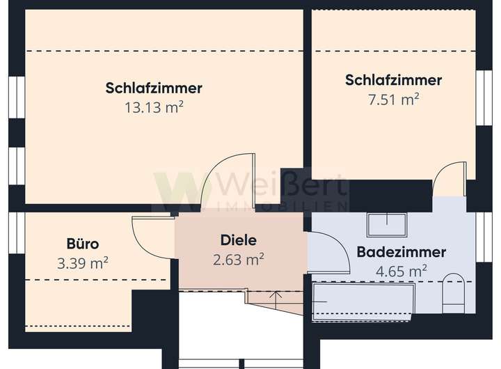 Im Dachgeschoss stehen Ihnen zwei Zimmer zur Verfügung, die sich optimal als Schlafzimmer und Kinderzimmer eignen. Ein weiteres, halbes Zimmer bietet sich ideal als kleines Büro oder Ankleide an. Ein Badezimmer mit Wanne, einem Handtuchheizkörper und einem Fenster rundet das Raumangebot dieser Etage ab.