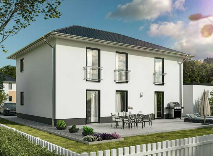 Der Preis bezieht sich auf ein schlüsselfertiges, massives Einfamilienhaus für € 383.390,- Euro und ein beispielhaftes Grundstück für 309.500,- zuzüglich der üblichen Kauf- und Baunebenkosten.