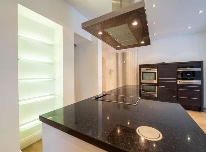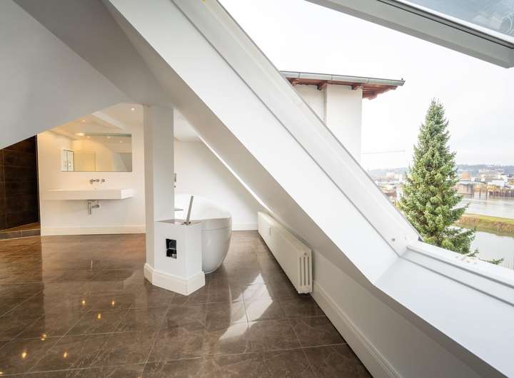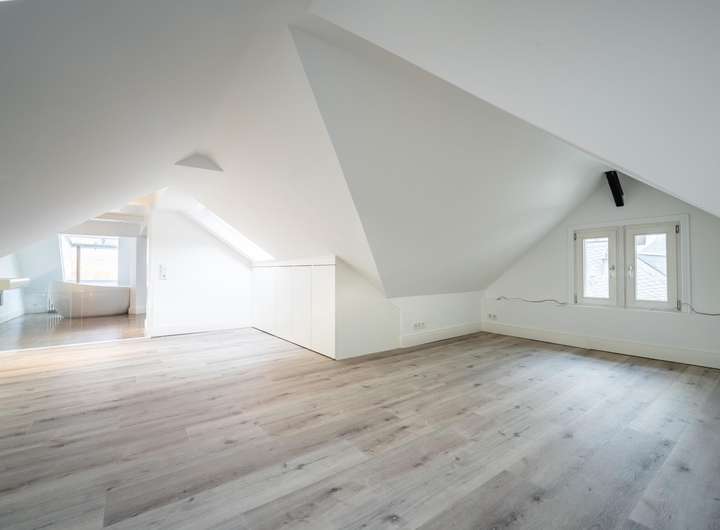 Eine Klimaanlage ermöglicht auch im Sommer einen komfortablen Aufenthalt im Dachgeschoss. Außerdem ermöglicht ein vorgerichtete Soundsystem die Installation eines Musikanlage für die gesamte Wohnung.