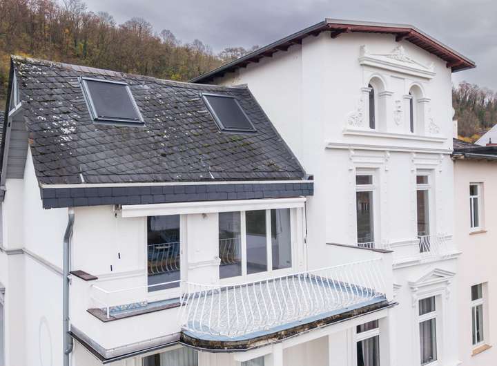 Nur wenige Minuten von der Innenstadt von Koblenz entfernt, befindet sich das Objekt im 2. OG und Dachgeschoss eines schönes Altbaus mit einem traumhaften Blick über den Rhein. Vor kurzem wurde die Fassade erneuert, seit dem erstrahlen die Fassadendetails in neuem Glanz.