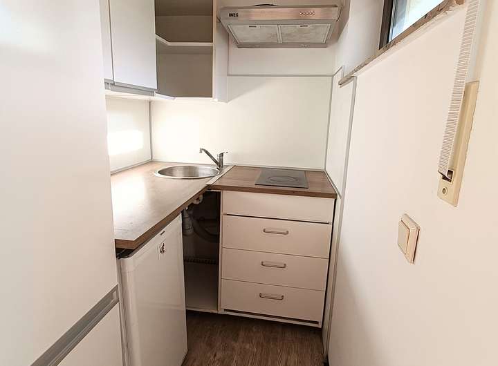- Einbauküche mit Herd und Kühlschrank