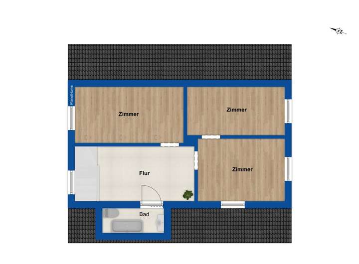 Hier befindet sich rechter Hand vom Flur das Badezimmer. Geradeaus liegt ein Zimmer mit direkter Verbindung zu einem weiteren Raum. Linker Hand ist ein weiteres Zimmer vorhanden, das flexibel genutzt werden kann.