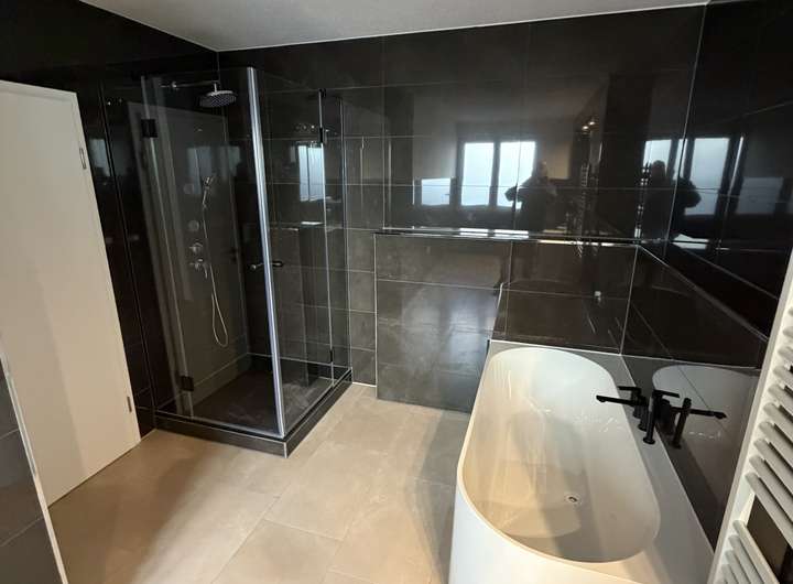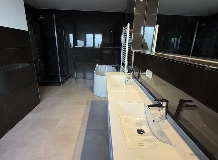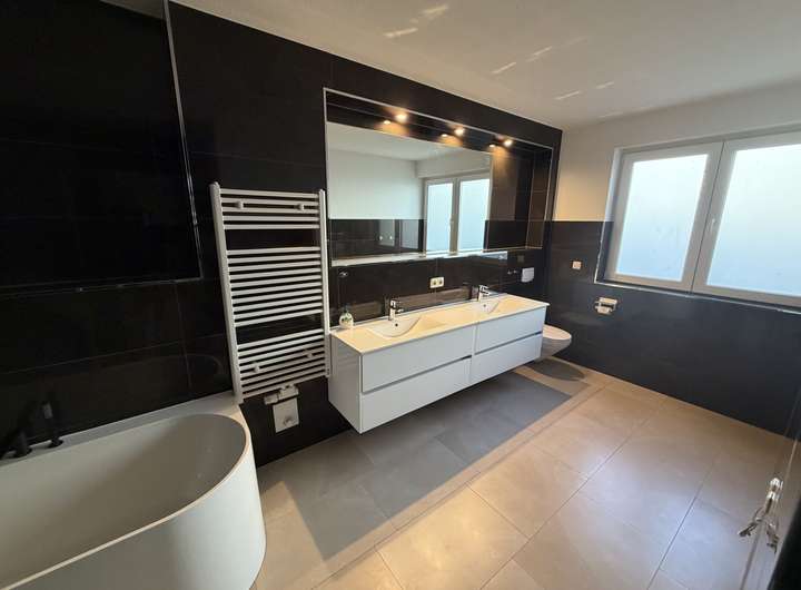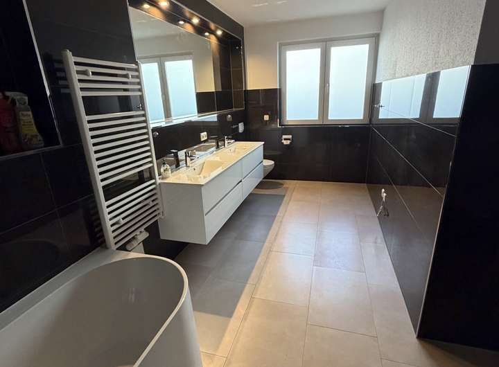 - Masterbad mit Fenster, hochwertigen Fliesen und Doppelwaschtisch