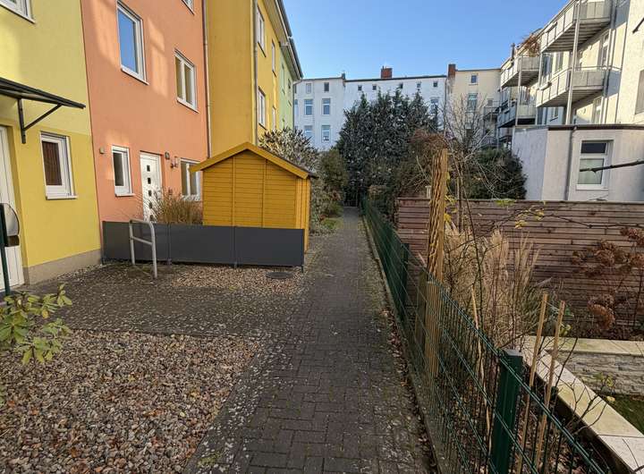 Trotz der zentralen und urbanen Lage liegt das Haus in einer sehr ruhigen Innenhofbebauung, abgeschirmt vom Straßenverkehr. Dadurch verbindet die Immobilie die Vorteile des innerstädtischen Wohnens mit einem außergewöhnlich ruhigen und privaten Wohnumfeld.