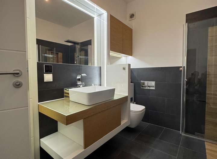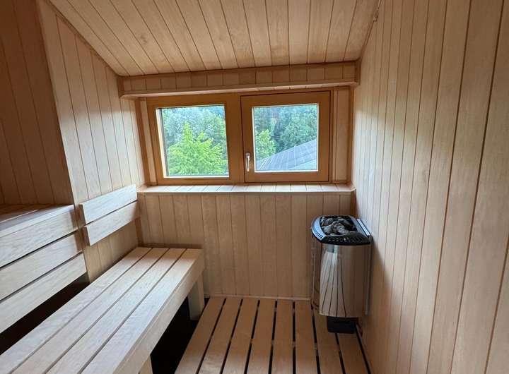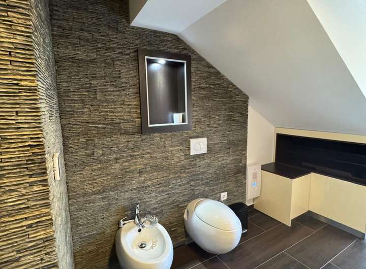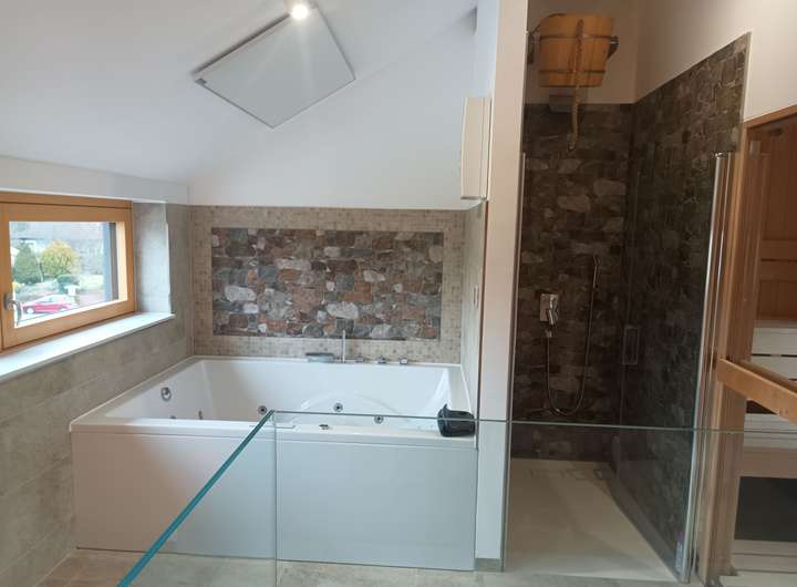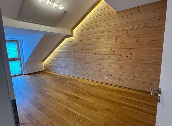 Die Etagen sind durch eine beeindruckende Holztreppe verbunden, und der Boden ist mit hochwertigem Massivparkett und Fliesen ausgelegt. Whirlpool-Badewanne, Sauna und Dusche bieten Entspannung pur. Infrarot-Heizpaneele mit Raumthermostaten sorgen für eine angenehme Wärme in allen Räumen. Ein Energieausweis ist in Erstellung. Die monatliche Nebenkosten betragen 180 Euro zzgl. Strom