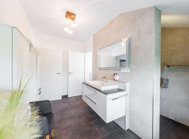 - Durchgehende Fußbodenheizung, hochwertige Materialien