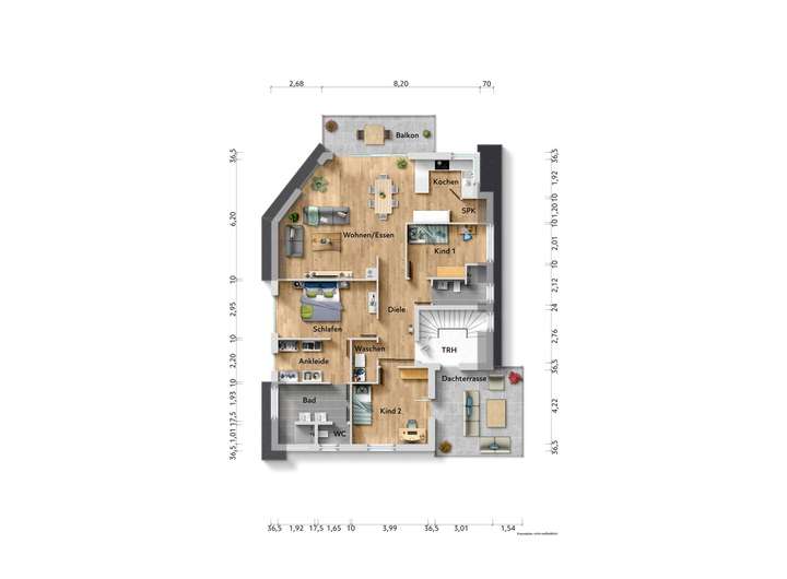 - Kinderzimmer mit Zugang zur West-Dachterrasse