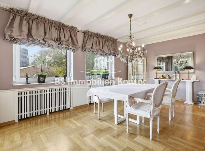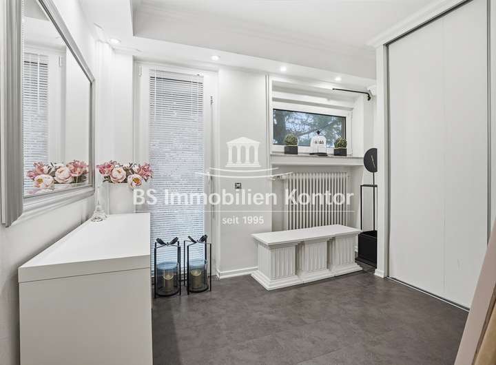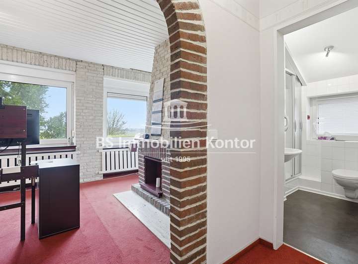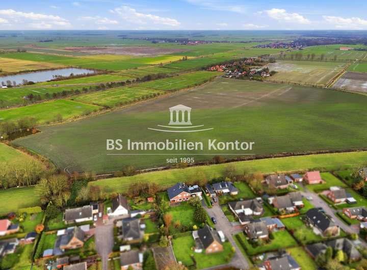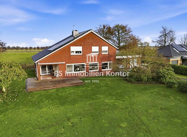 Sie suchen ein stilvolles, neues zu Hause in Emden? Dann sind Sie hier richtig! Dieses attraktive Immobilienangebot befindet sich in einer ruhigen und idyllischen Lage und überzeugt mit einem durchdachten Wohnkonzept sowie zahlreichen Highlights. Erleben Sie Wohnkomfort auf hohem Niveau in einem Haus, das keine Wünsche offenlässt. Die im Jahr 1971 in solider Massivbauweise mit einem Pultdach errichtete Immobilie wurde mit viel Liebe zum Detail und unter Verwendung hochwertiger Materialien gebaut. Das Einfamilienhaus überzeugt mit zeitloser Architektur und einem gepflegten, modernen Zustand – perfekt für anspruchsvolle Käufer. In ruhiger Sackgassenendlage gelegen, empfängt Sie dieses Haus mit offenen Armen – ein Ort zum Ankommen, Wohlfühlen und Bleiben. Beim Betreten des Eingangsbereiches fällt sofort die Wertigkeit und die gehobene Ausstattung auf. Helle, lichtdurchflutete Räume, eine offene Wohnkultur, edle Travertin-Fliesen und großzügige Fensterelemente unterstreichen den besonderen Charme dieser Immobilie. Die stilvolle Einbauküche mit angrenzenden Essbereich schafft den idealen Rahmen für genussvolle Kochabende mit Familie und Freunde. Die Kunststofffenster sind mit einer Isolierverglasung ausgestattet. Für Energieeffizienz im Haus sorgt eine Im Jahr 2023 installierte Wärmepumpe mit Solarthermie. Ergänzt wird diese durch eine im Jahr 2025 installierte Photovoltaikanlage mit 17,78 kWp sowie einem 20 kWh Stromspeicher. Die gepflegte Gartenanlage mit Süd-Ausrichtung bietet Ihnen viel Sonnenlicht, eine großzügige Terrasse und ein hohes Maß an Privatsphäre – ideal zum Entspannen und Genießen. Das Grundstück hat derzeit eine Gesamtgröße von 1.557qm und gliedert sich in eine Hof- und Gebäudefläche von ca. 873qm sowie einen sep. erwerblichen Bauplatz mit einer Größe von 684qm (Aufteilung siehe Luftbilder). Der Kaufpreis für das Immobilienangebot mit Bauplatz beträgt 570.000€.