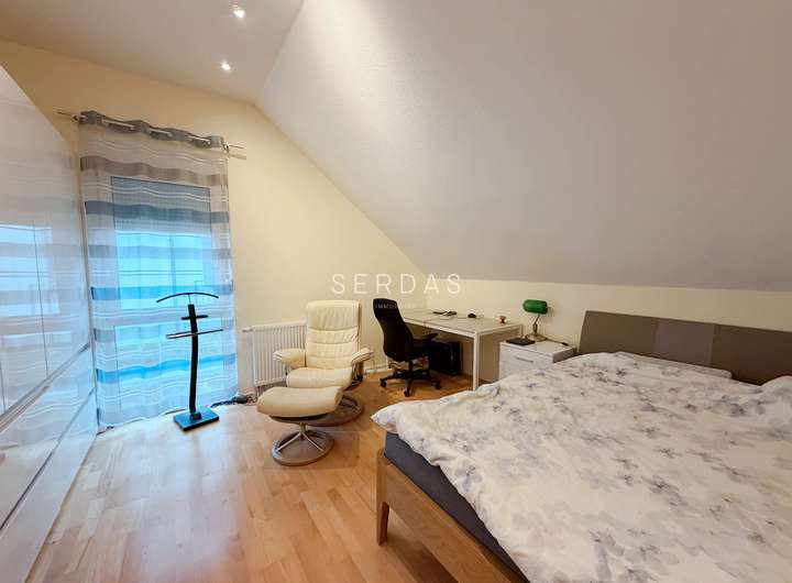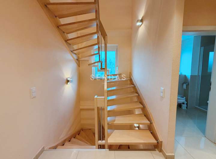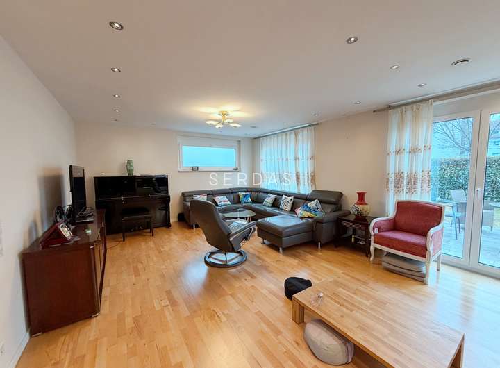 Die Immobilie verfügt über ca. 145 m² Wohnfläche, verteilt auf Erd- und Obergeschoss. Ergänzt wird das Platzangebot durch zusätzliche Nutzfläche im Untergeschoss, die sich ideal als Fitness- oder Hobbyraum nutzen lässt.