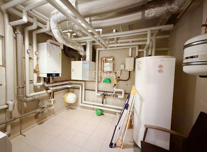 Die Beheizung erfolgt über eine Gaszentralheizung, unterstützt durch eine Solarthermieanlage mit Speicher.