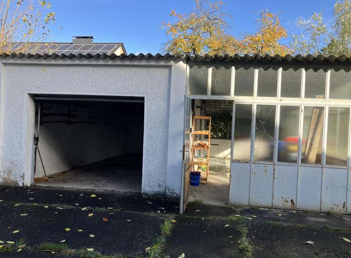 Eine Garage und ein zusätzlicher Anbau (Werkstatt/Gewächshaus) bieten Abstellfläche für ihre Autos /Gartenmöbel und Pflanzen.