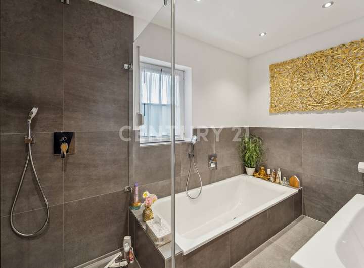 + Modernisiertes Badezimmer (ca. 3 Jahre alt) mit bodengleicher Dusche und Badewanne